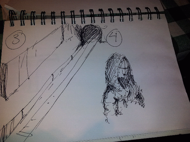 | 3: En snabbskiss över en perrong 4: en tjej som satt snett mitt emot mig |